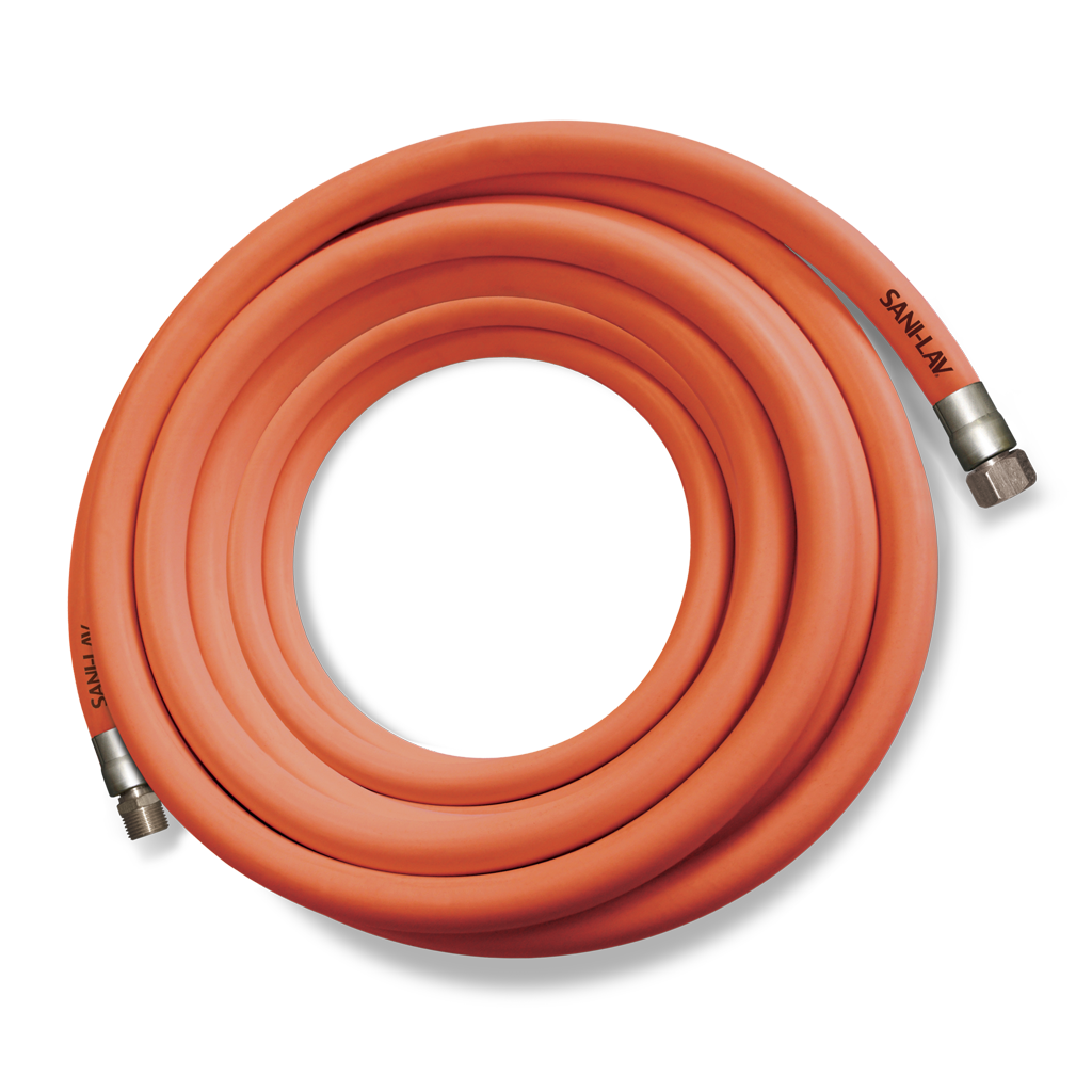Premium wrapped hose assembled with stainless steel fittings. Designed for use in the food processing industry.